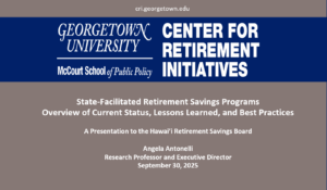 On September 30, 2025, CRI’s Executive Director, Angela Antonelli, delivered a presentation to the Hawaii Retirement Savings Board on the state retirement program landscape and lessons learned.